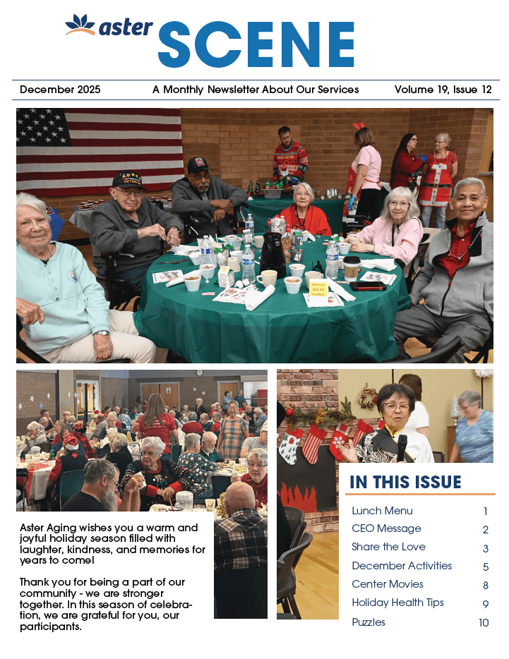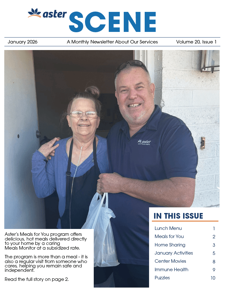 Keep up to date on the latest Aster activities, events, and relevant news through our monthly newsletter. Below you will find our latest issue, in addition to an archive of past issues. Physical copies are also available at our Senior Centers.